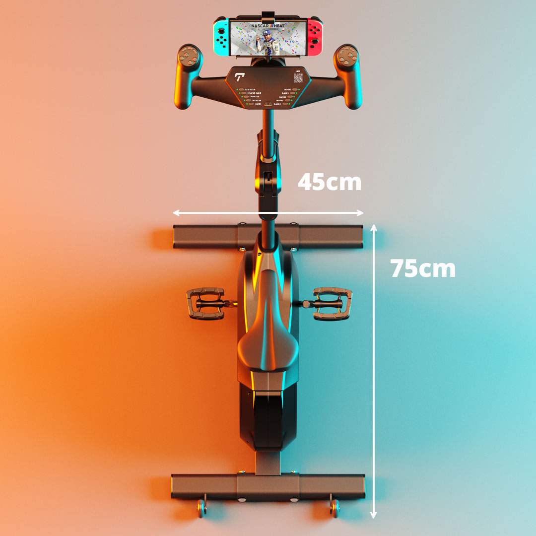 With a compact footprint of just 45cm x 75cm, this gaming bike doesn’t dominate your space and stores easily in a cupboard when not in use.